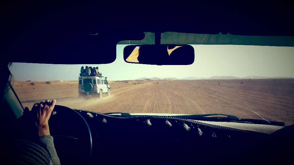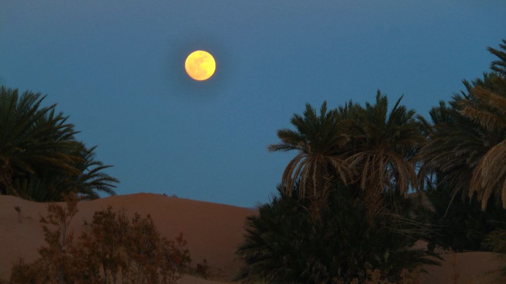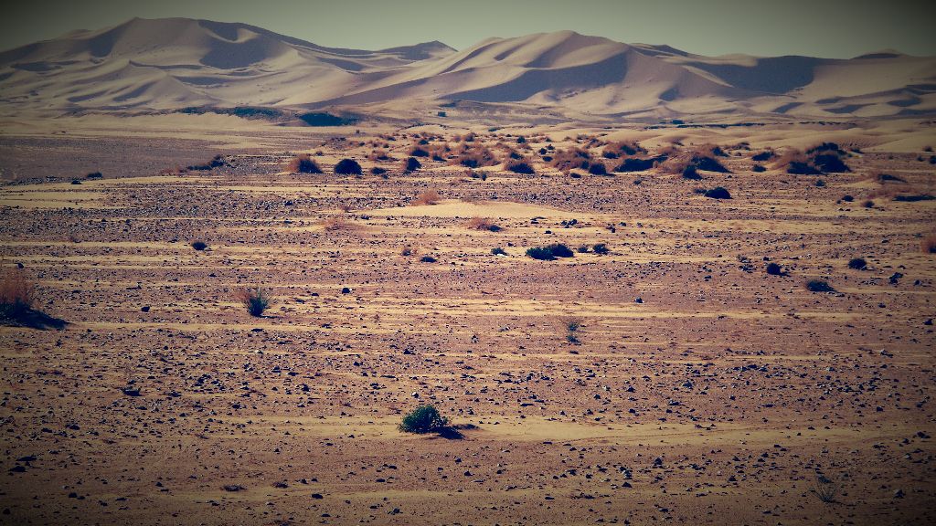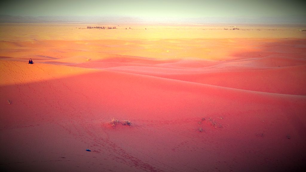 Erg Chebbi, one of the biggest dunes in Morocco. It is not so far from the village, maybe 8 km. You could walk there, but you never would. It is too hot. It is possible to take a walk before noon or just before sunset.
