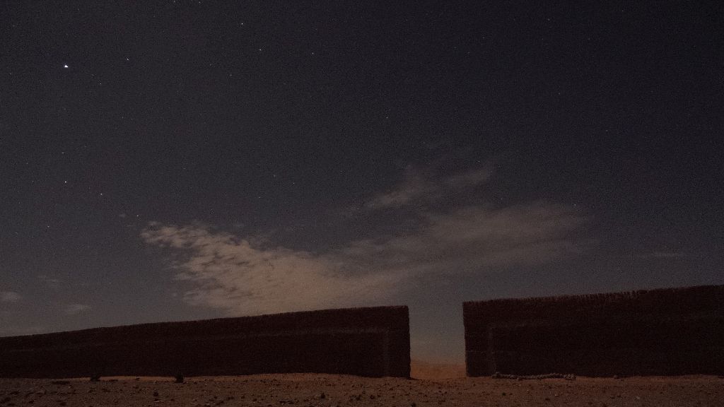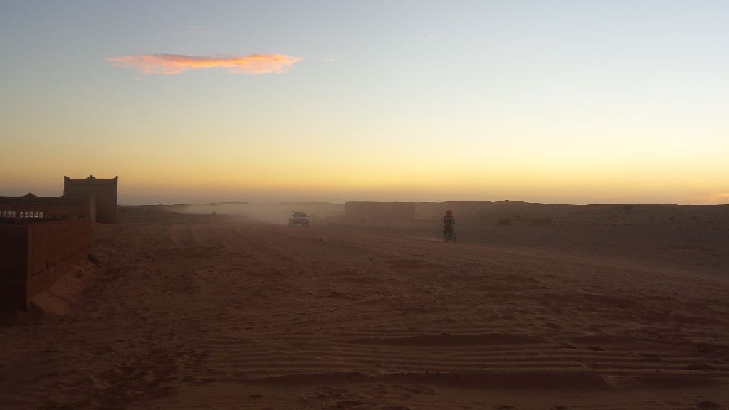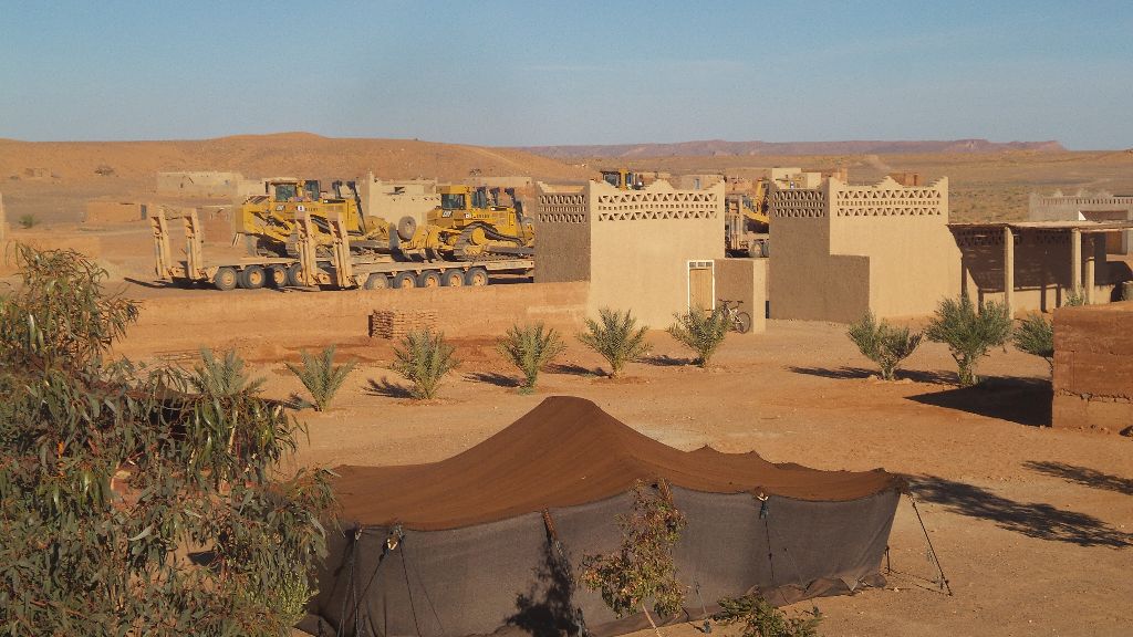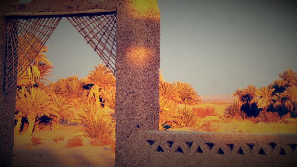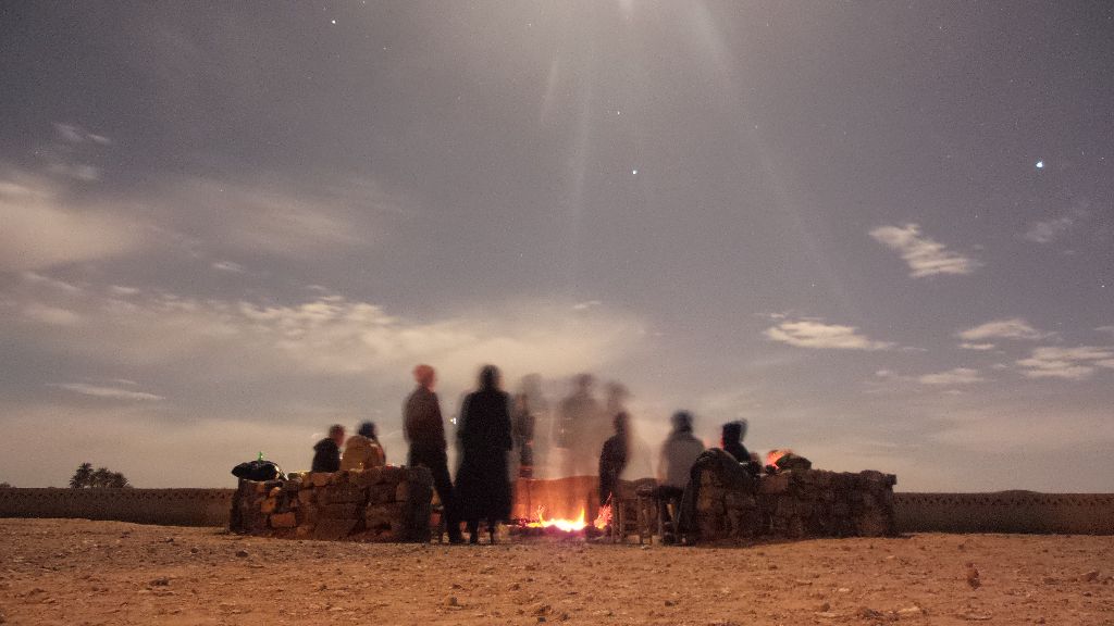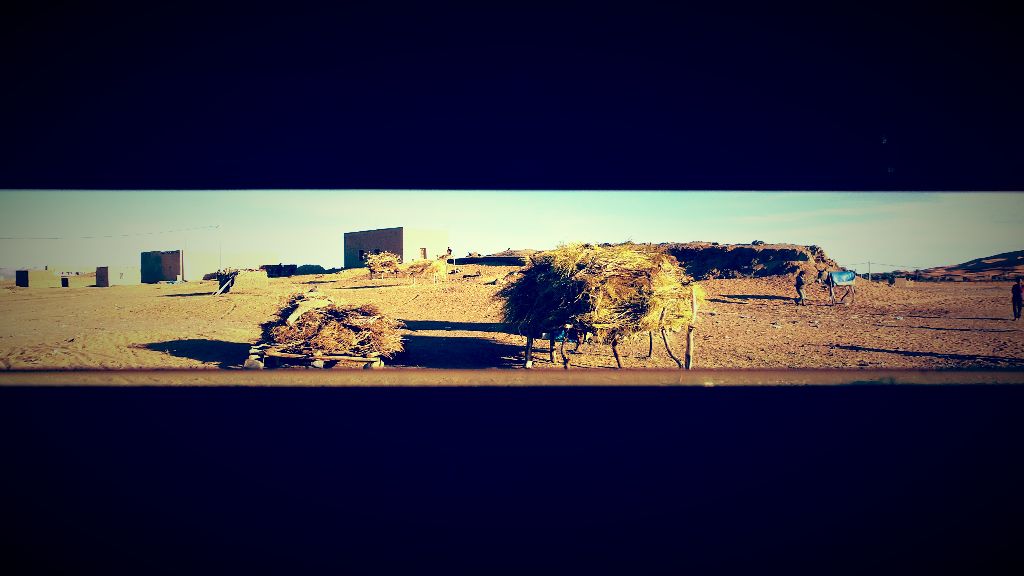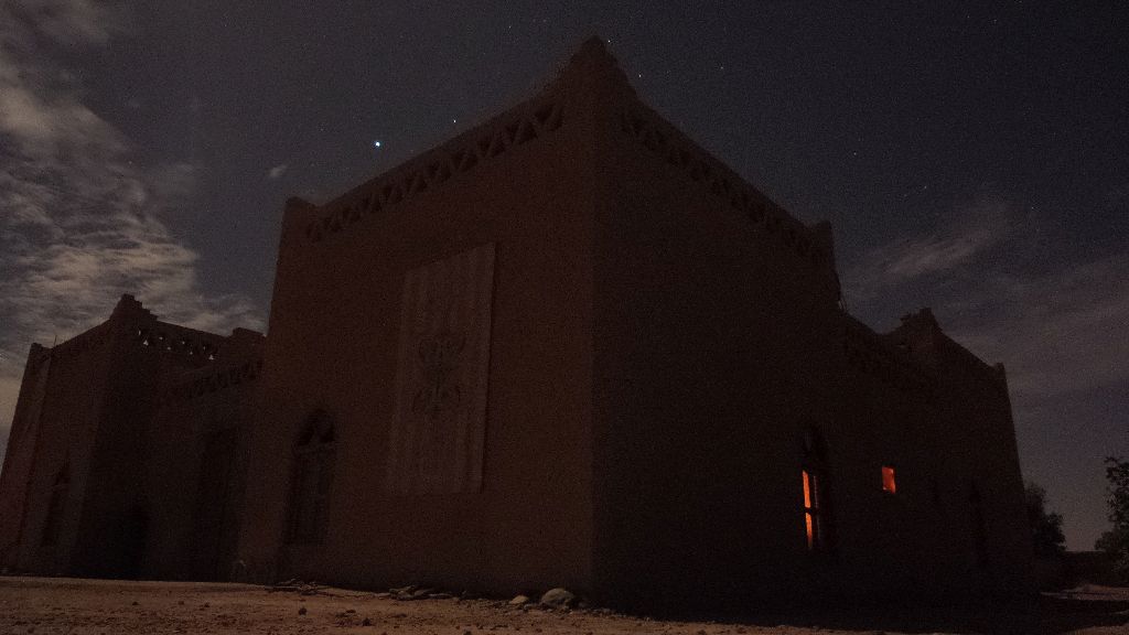 Itis a small Berber village, with a few families living there. There is a school, a graveyard, a mosque and adobe houses. A small oasis is nearby and a military base, the last one before the Algerian border. It is far from everything. During the day it is possible to see on the horizon